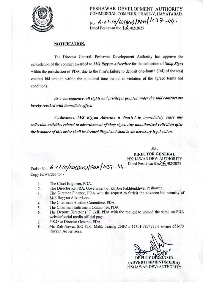 In 1975 the Greater Peshawar Metropolitan Authority (PMA) was created under Urban Planning Act 1975. In 1978 the Provincial Government promulgated Urban Planning Ordinance (UPO) & under its Section-17 Local Area Authorities (LAAs) were established and the PMA was renamed as PDA. Provincial Urban Development Board (PUDB) was established under section - 3 of the UPO to run the affairs of the LAAs under the administrative control of Physical Planning & Housing Department (PP&H), Provincial Government.n 2001 the Local Area Authorities were devolved to respective City / District Government under Local Government Ordinance 2001 and 1978 was repealed through an Ordinance in May 2002. In 2012 all the Local Area Authorities under section 80 were placed under the administrative control of Local Government & Rural Development Department Government of Khyber Pakhtunkhwa. In 2013 All the Local Area Authorities under section 121(2) retained in Local Government, Elections & Rural Development Department of Khyber Pakhtunkhwa & shall continue to exercise administrative controls over Local Area Authorities. and more.